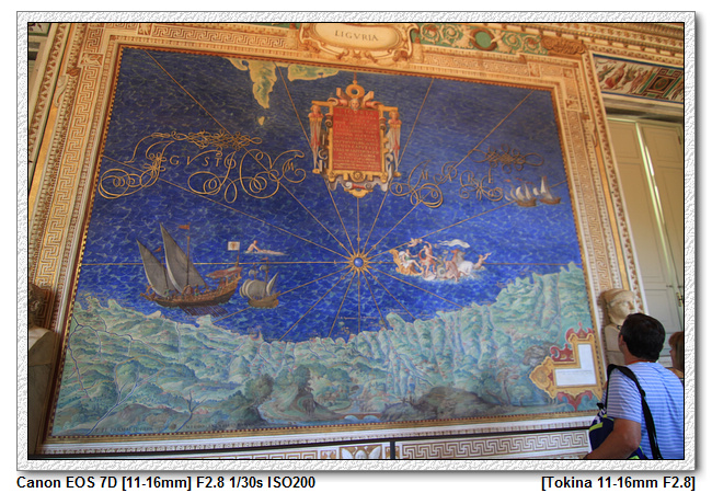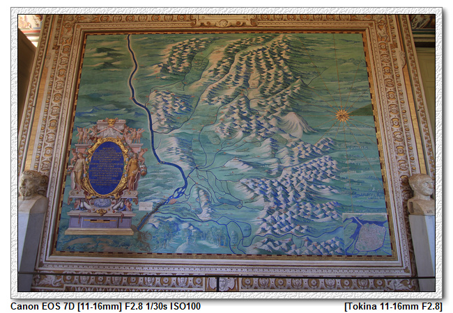 掛毯陳列室之後,馬上就是地圖陳列室。地圖陳列室裡描繪義大利各城市和沿海島嶼地形圖,兩旁牆上40幅地圖被認為是當時地理上最重要的文獻。兩旁的地圖加上浮雕的天花板,整個走廊顯得超級華麗。