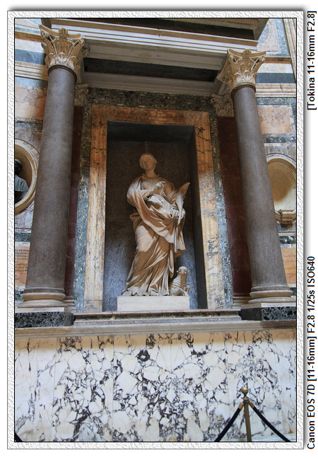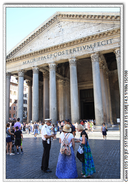 萬神殿,古羅馬時期的宗教建築,後改建成一座教堂,是古羅馬時期重要的建築成就之一。公元609年拜占廷皇帝將萬神殿獻給羅馬教皇卜尼法斯四世,後者將它更名為聖母與諸殉道者教堂,這也是今天萬神廟的正式名稱。