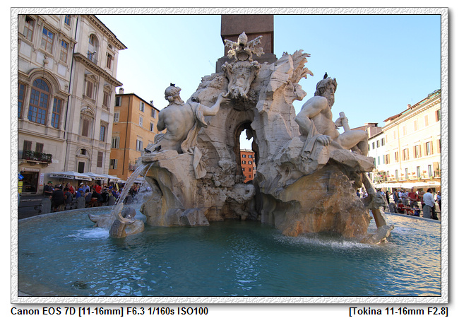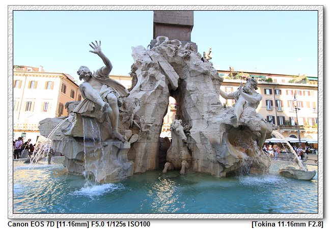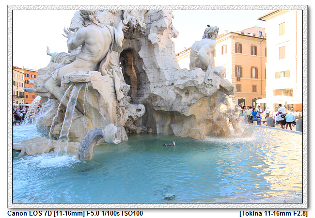 我們提著大包小包的紀念品,來到也是離萬神殿不遠處的一個噴泉。之所以知道這個噴泉,是因為它是電影「天使與魔鬼」中水暗示的案發地,第四位紅衣教主就是被丟進四河噴泉裡。