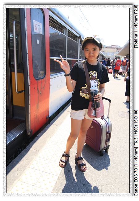 在私鐵站售票處,小羽媽可是猶疑很久,搞半天,才下定決心去買票,但實際上也沒想像中的困難,反正就是直接說要去Sorrento、三張票,售票人員很有經驗,倒是小羽媽對半天,要確認找錢的情形與票卷是否正確。拿票進了私鐵,其實還是搞不清楚是哪一個月台,幾點來車子,但小羽媽直接往人多的月台走(還好才兩個!),倒是小羽爸厲害,眼尖的看到月台上有電子看板,顯示17分鐘後,往蘇連多的車子會到。網路上提到私鐵沒有冷氣,又人多擁擠,實際上人真的有點多,大家又沒在禮讓的。還好,下午一點多的火車,雖然滿滿的人,但最後我們都有位子坐,行李則是放在身邊顧著。