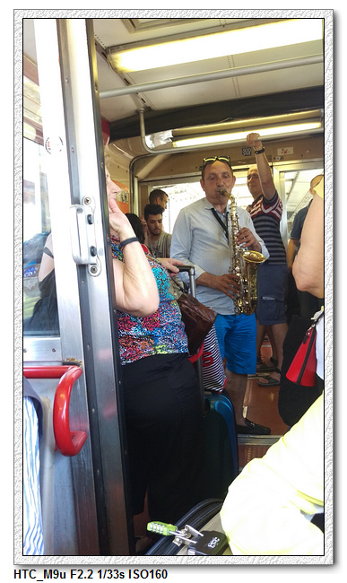 一個多鐘頭的車程,只要坐著,沒有冷氣,只有移動時才有一些風從窗戶灌進來,這倒也不是那麼痛苦。私鐵比較特別,還有人在火車上即興表演,當然是希望我們這些觀光客打賞一下,第一次看到,覺得很新鮮,後來到龐貝來回+回程到拿坡里,我們就見怪不怪了。