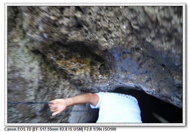 ▼【進入藍洞時。要先平躺避免撞到頭,旁邊的鐵鍊是幫助船夫將船拉進洞裡】