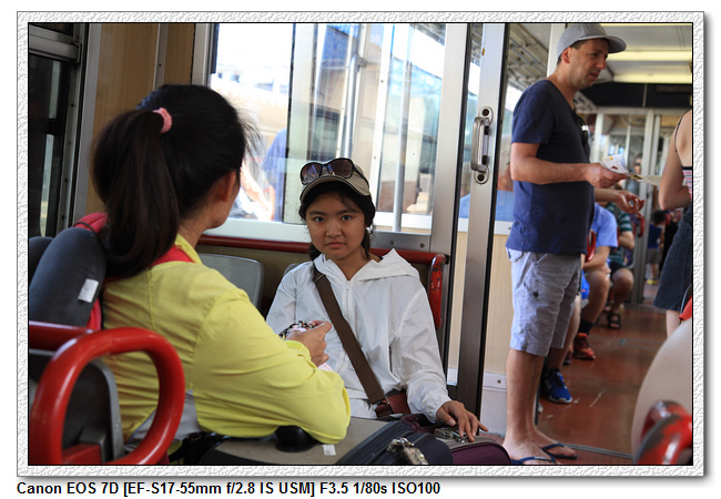 拖著行李在石頭路上走了近20分鐘,抵達車站,小羽爸在車站找公共電話,為了信用卡能在歐洲使用,要開預借現金的服務正在努力,小羽媽買票、小羽顧行李。買好票,發現車子已進站,趕緊上車,找到位子就坐了。