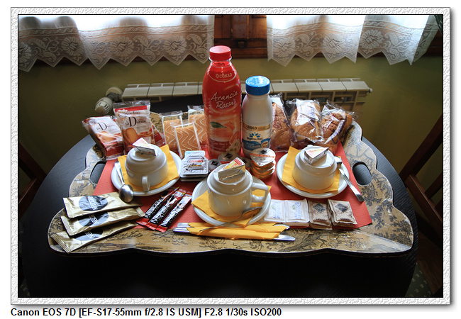 旅館接待人員相當貼心,有向我們稍微介紹了一下目前旅館所在佛羅倫斯的位置、附近景點,也提供公車資訊可以坐公車到米開朗基羅廣場。房外有個小客廳含咖啡機可以看書報、喝咖啡,房間內麻雀雖小、五臟俱全。重點是小桌子上居然擺著隔天的早餐(咖啡包、餅乾、起司、牛奶...等),豐盛是豐盛啦,問題就是佔空間,而且一點都不可口的樣子。