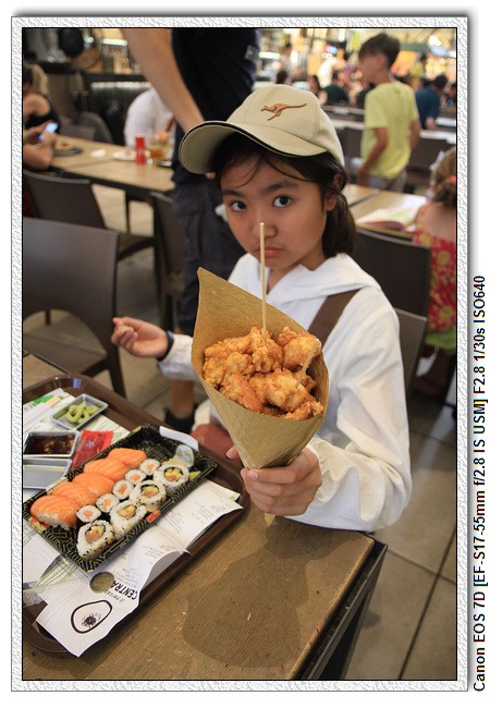 中央市場的二樓,就像一般大賣場的美食街,自己找位子用餐,不過不像台灣的美食街,人潮沒那麼多,一定有位子,當然也沒有table fee的問題。小羽晚餐是壽司,小羽媽則選擇中式口味的小籠包(這裡居然有賣小籠包),小羽爸則是買看起還很好吃,實際上難吃的炸機塊,因為吃雞塊會口渴,後來又點了一杯啤酒。