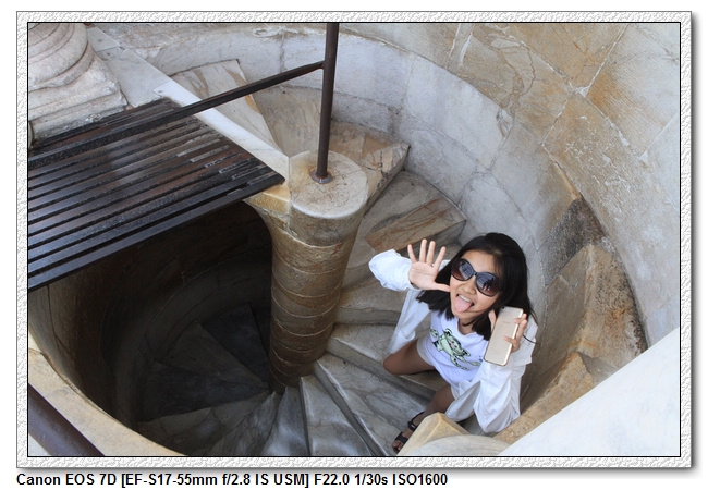 ▼【進入之後,會先集合在底部,聽解說員講解斜塔構造,沒聽懂】