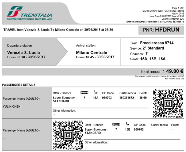 這是列車還是一樣是義大利國鐵,車廂等級是Standard。