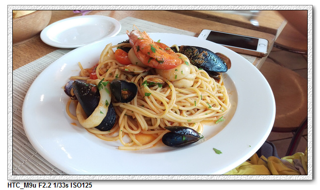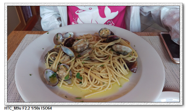 辦完入住手續,已是中午十一點了,肚子餓的小羽,只想吃飯。一下樓,就在旅館對面看到一家很大家的餐廳,只要看到小羽可以點的蛤蠣義大利麵,我們就走了進去(事後知道旅館會給這餐廳的優惠卷....哎....沒省到!)。