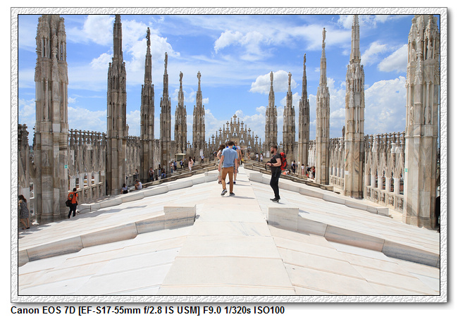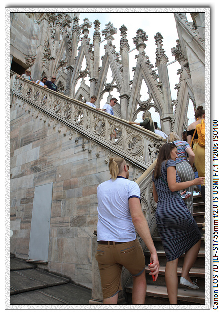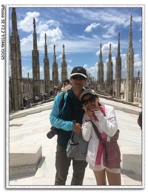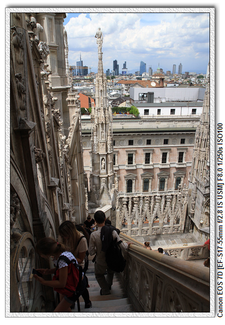到處是尖塔的米蘭教堂,身在其中,其實和其他的高塔感覺很不相同的,背景是一個個的尖塔,還不錯。米蘭教堂登塔,由於有一些樓梯是位於室外,在登頂的過程,有小刺激一點,但,真的登到頂後,走下來,就覺得還好。
