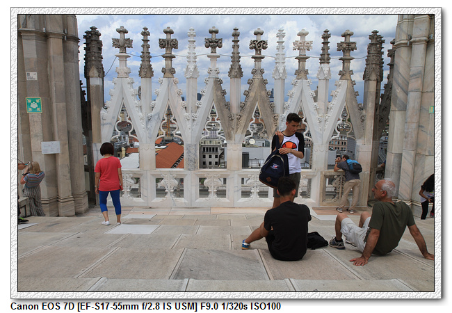 果真登米蘭大教堂塔,除了坐電梯外,還是要爬些樓梯的。但,比之前幾個教堂、斜塔好多了,感覺沒有走很多樓梯,就先到其中一層外部。