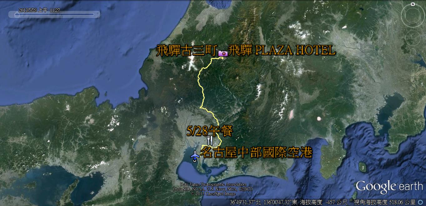 | 1.小港機場 | 2.刈谷市(午餐) | 3.飛驒古三町 | 4.飛驒 PLAZA HOTEL | 5.會席料理 |