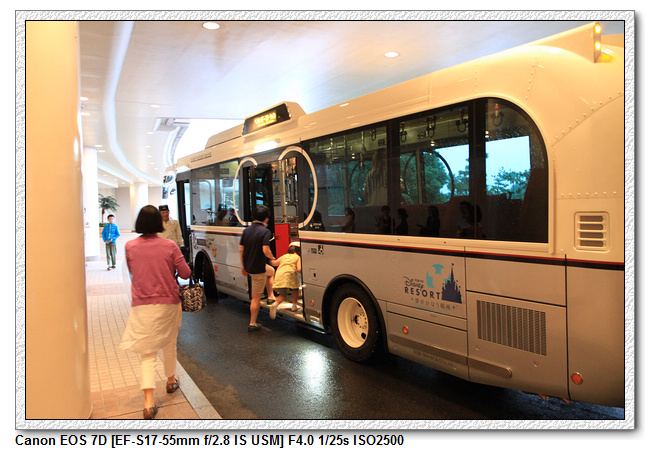到舞濱車站有兩種方式,一是搭迪士尼電車(還沒買票),另一種是搭免錢的接駁車,飯店門口就可搭乘。