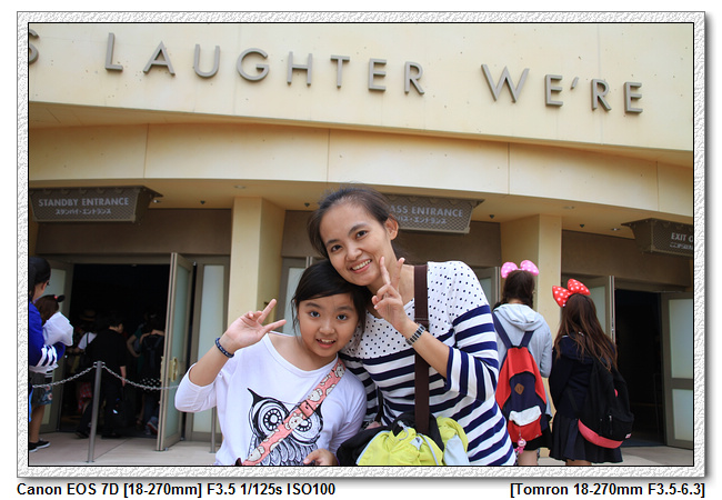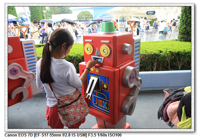 "飛濺山"應該是一整天下來最恐怖的遊樂設施了,在排隊時,小羽一直唉唉叫小羽媽為什麼要抽這fast pass。小羽媽心裡也是一整個害怕到不行,卻也只能表示鎮定:每一種都要玩,小羽爸只好跟小羽說,滑下去的時間很短,以前也坐過啊。最後的照片中,小羽、小羽媽都是頭低低的閉眼啦。
