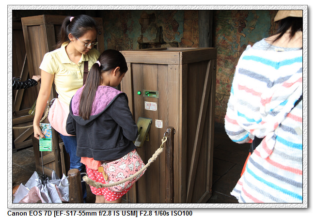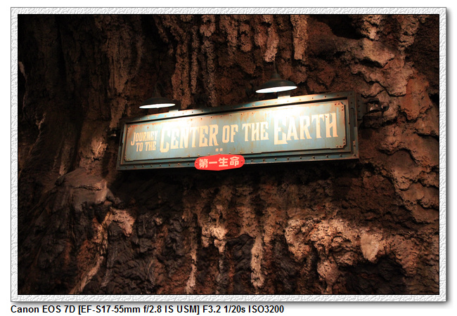 地心探險類似於飛濺山,只是飛濺山最後是高速衝向水面激起水花,而地心探險是觀賞玩地心場景以及怪物之後,也是高速衝往一個黑暗洞穴,最後是在黑暗中高速滑行。 小羽排隊時跟昨天一樣,一直碎念說好恐怖,為什麼要來玩這個。玩完之後,小羽還是覺得很恐怖。