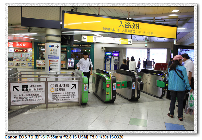 離開動物園,回到上野車站,欲搭銀座線到淺草,順著預期路線進入車站,沒想到銀座線是在車站外,無法刷卡出去,日本車站是不能同站進出,如果要同站進出時,要跟站長說一聲,然後扣掉日幣140圓才能出去,在沒搞清楚狀況下就浪費了140圓。3人就420圓。
