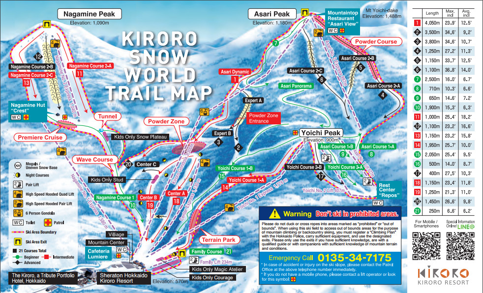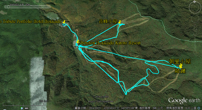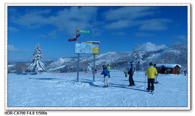 Kiroro滑雪場其實不算大,兩個山頭的大小,第一天就把所有綠線走過一遍。隔天走一小段紅線。Kiroro紅線的坡度跟綠線差不多,只是長度稍長了一些。黑線對於目前的我們,就恐怖了。