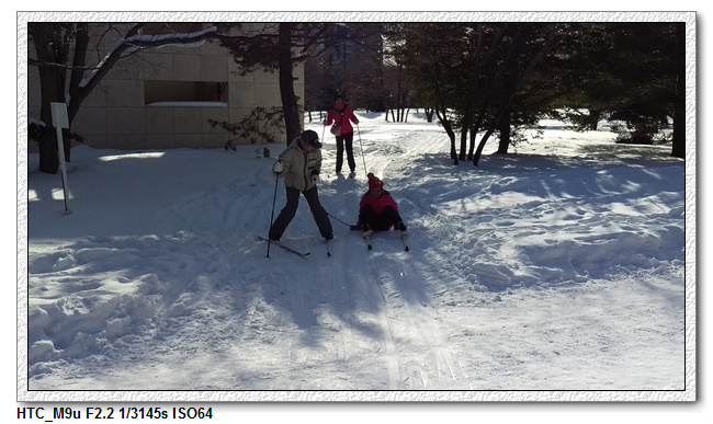 短短的一圈,就會滿身汗,小羽跟小羽媽走了一圈之後就休息了,小羽爸自己又滑了一圈,途中也摔得好幾次。