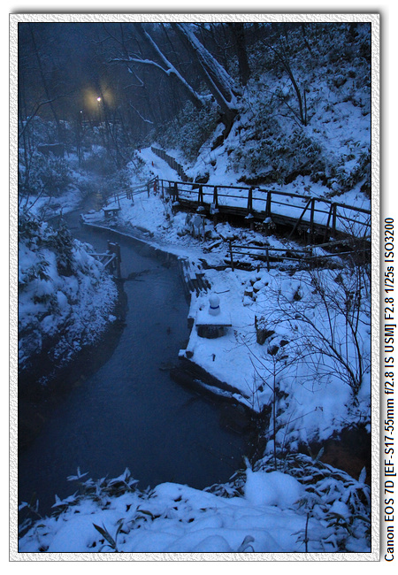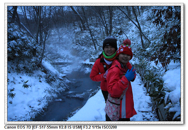 天色已暗,本來是想延著車道走回旅館,剛好遇到兩位對岸自助行的夥伴,他們想去足湯看看,我們五人就一起往大正地獄的方向前進,人多比較好助膽。