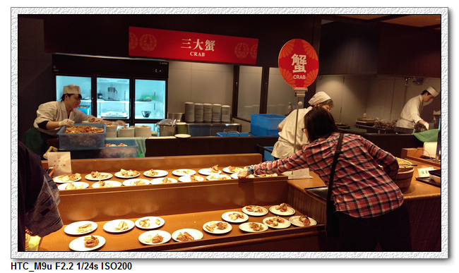 這家飯店晚餐,就是主打三大蟹吃到飽(好像很多地方都是主打這項),三大蟹就是毛蟹、帝王蟹、松葉蟹。不過酸然是三大蟹,但最好吃的還是帝王蟹,也是排隊最多人。