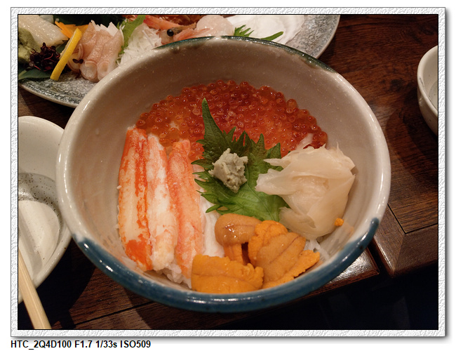 由於單點,選了小羽愛的火鍋、白飯一碗,小羽爸的啤酒、生魚片,網友大推的釜飯(要等三十分鐘,放在桌上現煮,很特別)