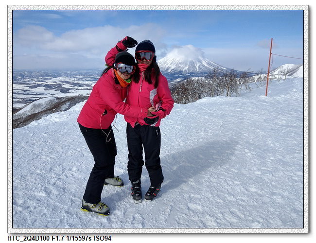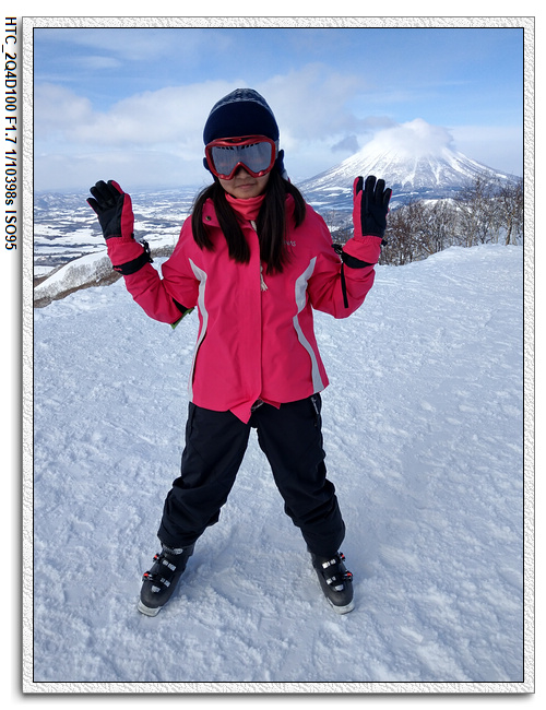 今天天氣不錯,山上的風景很漂亮,後面的羊蹄山可以拍的很清楚。但,下山就考驗小羽媽了。小羽爸先下坡,小羽居然是一路側滑下坡,小羽媽則是很慢很慢的滑下去,沒有摔倒的狀況下安全度過最恐怖的一段,之後算是很平順地按照小羽爸昨天想的路線,ISOLA