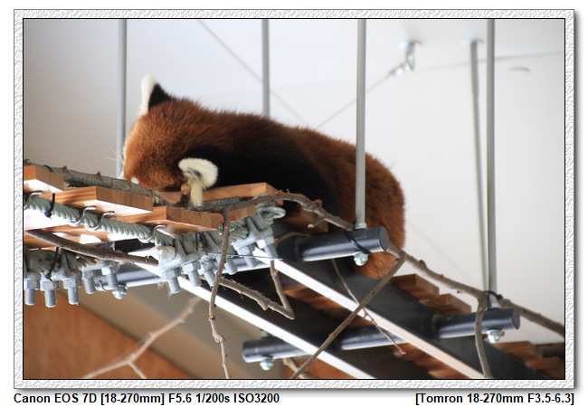 ▼【 正在研究頭頂上的設施時,突然發現一隻睡覺的小貓熊】