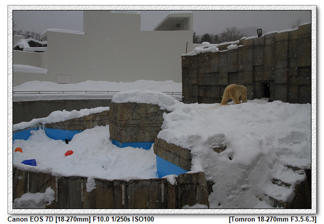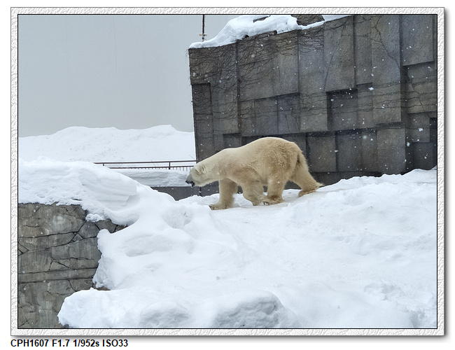 小羽最期待的北極熊,只有室外一隻,冷+下著雪,我們居然沒有駐足很久,小看了一下...就默默的離開(怎麼沒有室內館啊!太糟了!!)