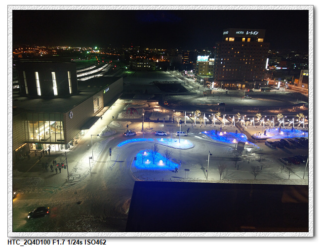 原本擔心飯店離車站很遠,又要在雪地拖行李,沒想到離車站很近,在車站就能看到了。