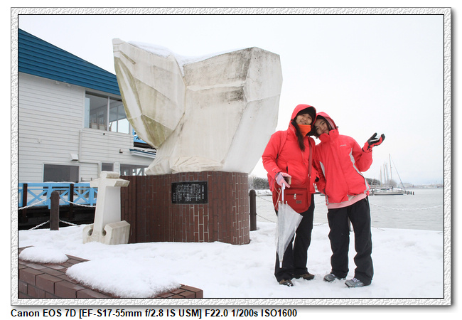 在元町公園實在也沒走多少路,連八幡坂、金森紅磚倉庫群都沒有去走。大雪紛飛的路上,我們拍了幾個網友推薦經典的照片,到元町公園遊客服務中心打了一下道館也中午12點多了,便打道回府,到飯店拿行李前,先去買了六罐小羽角膜塑形片的清洗液和小亮榆的車車,拉行李到對面坐機場巴士到函館機場了。