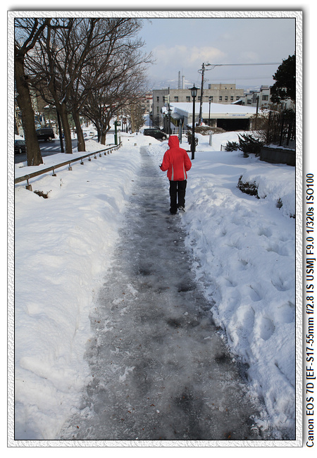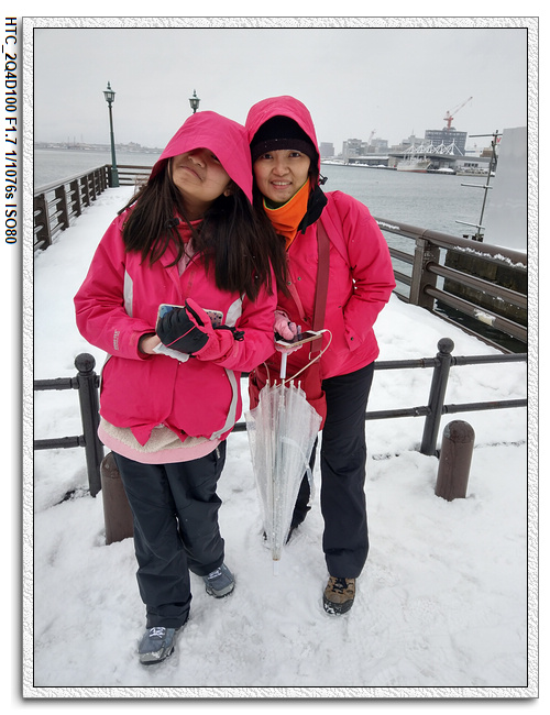 吃飽喝足開始早上的行程:元町公園+八幡坂走走(八幡坂最後沒去),但卻開始下起了大雪,昨天下雨,今天下雪,真是什麼天氣都給我們遇到了!小羽媽沒跟小羽爸說好,我們坐電車到了最後一站,慢步往回走了一站,三個人一邊抓寶一邊逛,中間還經過了一家超市,雖然沒要買什麼東西,還是進去逛了一下。