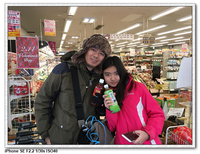 發現滑雪場一罐可樂190日幣,平常販賣機160日幣,超市居然只有101日幣。果真全世界到哪裡都是超市&大賣場賣的東西最便宜啦! 有炸蝦便當才不到四百日幣,幾乎和泡麵一樣便宜了!,小羽&小羽爸賭氣,硬是各買了一罐綠茶和紅茶。