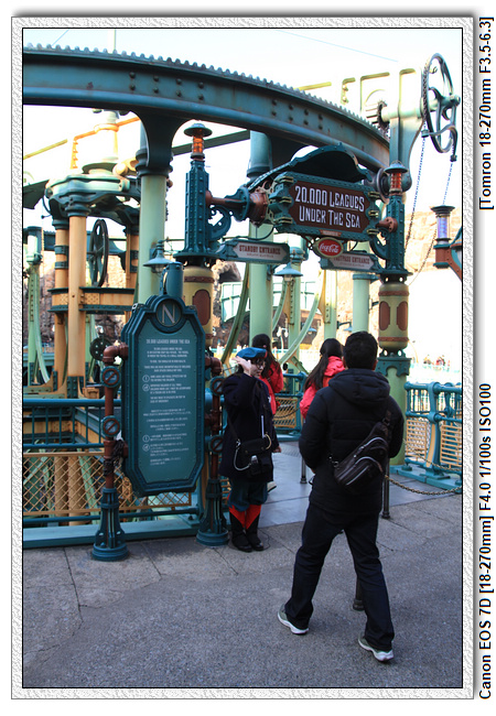 海底巡遊艇算是舊設施新主題,上一次這個主題是風暴騎士,這次一則是以一個可以縮小的魚型巡遊艇,跟個尼莫以及他的朋友們暢遊海底,還有多莉也會出現。最神奇的是,在進入設施之前,櫥窗有台巡遊艇的模型,就在解說員一邊解說時(是完全聽不懂~),會突然的縮小,就在你眼前一堆泡泡消失後就縮小了,好有趣。
