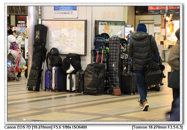 一覺醒來,睜開眼已經接近後越湯澤,列車緩慢進站後,我們開始拖拉行李下車。一下車很明顯的感受到溫度的差異,趕緊穿上最厚的外套,從車站的窗外已經是與東京物同的積雪的景色,難怪溫度下降這麼多。身旁另一群似乎也是從台灣來的遊客,突然爆出一句「安娘為,我後悔了」,頓時讓第一時間聽到的小羽跟小羽媽突然笑了出來。