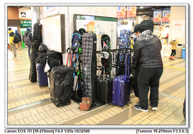 商店街門口的另一處,則是放了許多遊客的雪具,看來這裡的遊客以滑雪客居多。