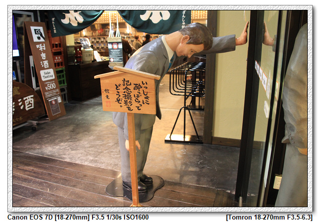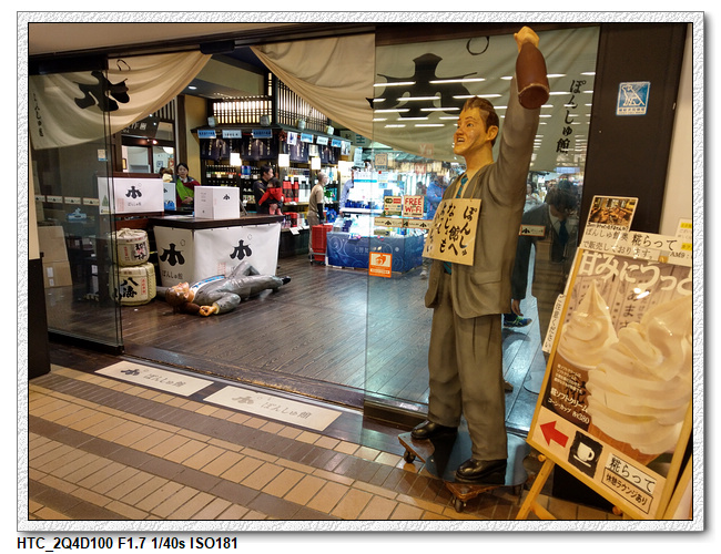 後越湯澤車站內有個不算小的商店街,除了販賣紀念商品之外,也有不少可用餐的店家(今天沒打算在這用餐,要趕搭雪場的接駁車),再往商店內走,有一區是販賣酒類商品,門口有三個喝醉大叔的的雕像,很傳神地展現酒醉的樣子,很有趣。