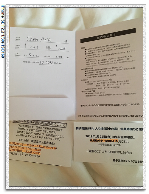 進入飯店後,就開始辦理check in 手續,接待人員確認入住身分之後,知道我們不會說日文,就會一位會說中文的接待,這位接待人員是來自台灣,好難得遇到會說中文的接待人員,之後我們就一直問一些問題,搞得接待員一直問我們是不是第一次滑雪(問了三次,可能覺得有滑過雪的應該不會問這些問題),其實我們的問題應該不算笨問題,只是確認一下纜車的位置以及方向,還有哪裡可以吃東西,以及租雪具的問題,雖然地圖上有標示,但還是問過比較保險。