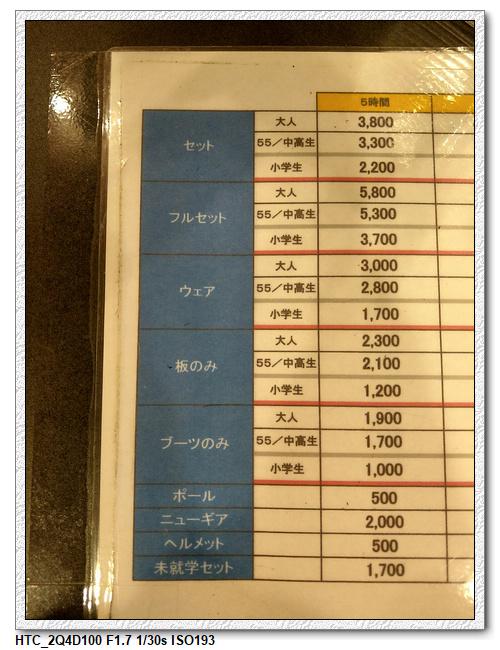 ▼【 租雪具單子,很容易理解的;舞子高原】