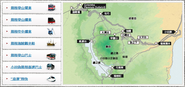 | 1.新宿車站 | 2.箱根湯本 | 3.強羅 | 4.早雲山 | 5.大涌谷 |