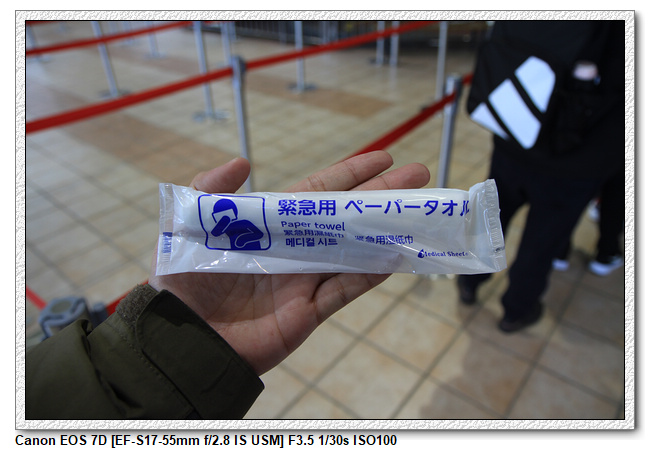 而在早雲山轉接空中纜車時,每人都發一條濕紙巾,一開始不知道發這個是做啥用的,看了一下旁邊的告示版才知道,原來是用來避免經過大涌谷濃煙過盛時,遮住口鼻避免吸入過多的濃煙。