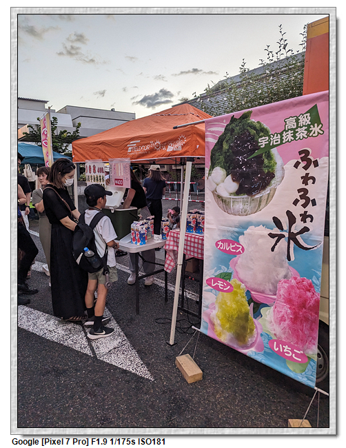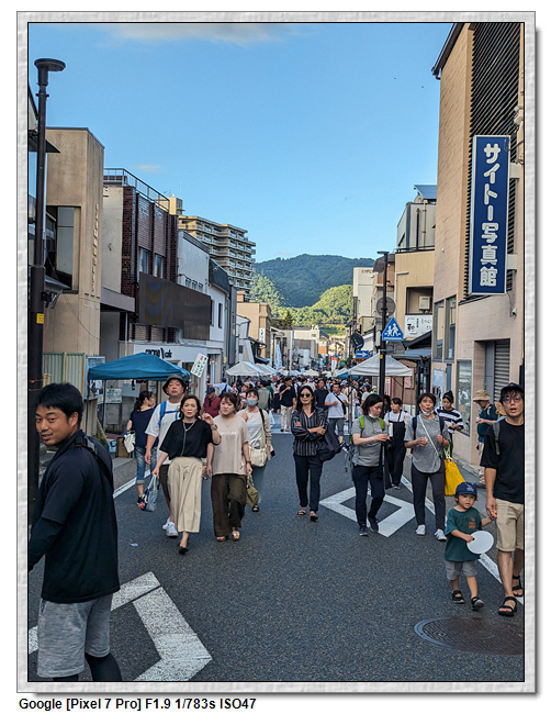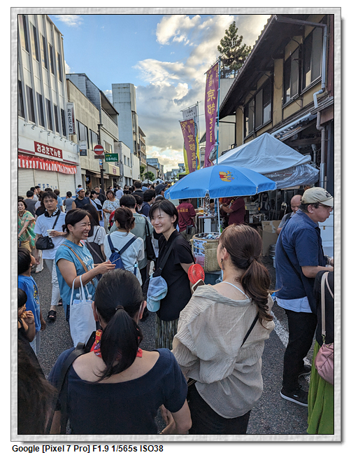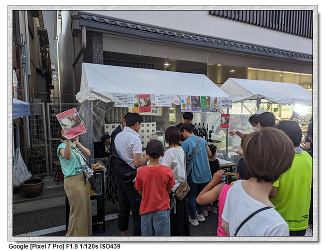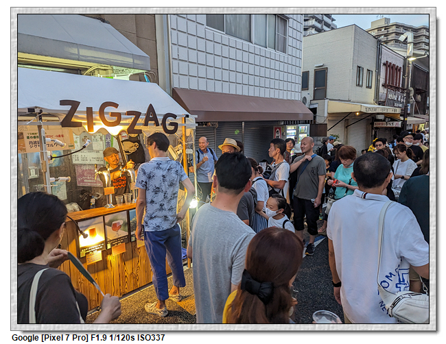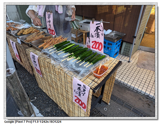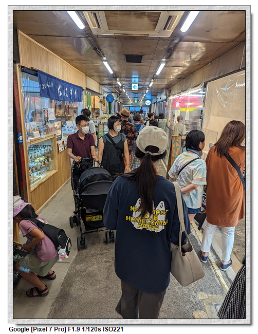 買了啤酒之後,就邊喝邊逛,在台灣很少地方能邊喝啤酒邊逛街,更何況是在日本,很特別的經驗。在市集,很多燒烤看起來很美味,但似乎被啤酒罐飽不太餓,就變成單純的逛街。