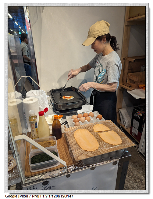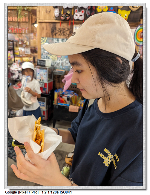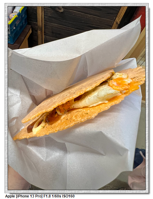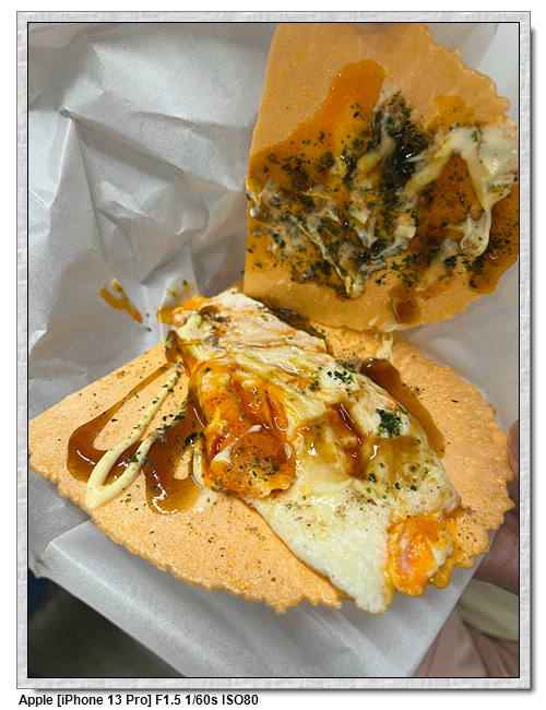 亂走亂逛,酒到一條小吃街,有家小商店,看起來像是臨時擺攤的攤位,賣的商品是 たこせん ,外表是脆脆的餅乾、裡面有荷包蛋、一些配菜跟美乃滋。吃起來超美味, 脆脆的外皮餅乾+半熟蛋,還有一些美乃滋混搭的口感,當下立刻加買一個。現在想起來還是覺得很美味。