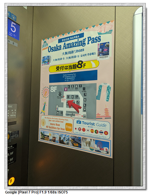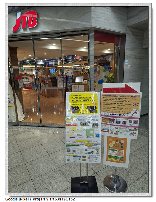 到了難波站,走到旅遊服務中心的大樓,我們找不到旅遊服務中心,在這繞了好久,最後好像是在二樓找到一個看板,上面寫周遊券不是在這裡領,畫了一個指示地圖。
