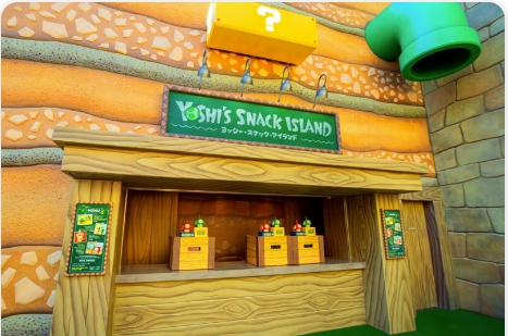來到超級任天堂世界已經是中午了,原本打算先進來後再找東西吃,第一個想法是到奇諾比奧咖啡店,結果必須預約,且要到15:00才能進,太晚了,那時已經離開這裡了。再來就是耀西小吃島,大排長龍,這家現在應該是超級任天堂世界唯一有賣吃的店。