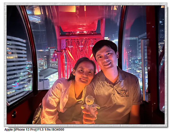 HEP FIVE摩天輪乘坐舒適感很不錯,整個行程很平穩,晚上可看大阪的夜景,不過別期望大高,夜景很普通。