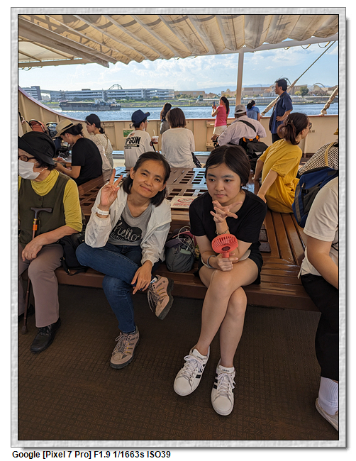 ▼【上船後,小羽爸選擇到甲板上拍照(曬太陽),小羽跟小羽媽則是坐在下層處(沒有太陽)】