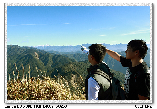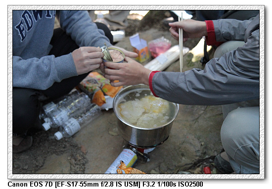 本來領先部隊想拋棄我們先攻頂,沒想到手套、爐子以及鍋子都在蝸牛部隊身上,所以只好停下來等。此時已有重大決定,下次伙食以及爐子鍋子等,要給健均及聖家背,然後他們要先上山煮好等我們,這樣時間才會剛好。(這應該不會太過份吧~剛剛好而已)