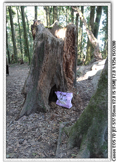 【這包零食有點重,偷藏在樹下,下山時再來拿】