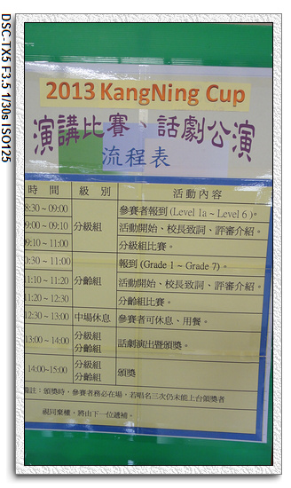 又到了康寧演講比賽的季節,這一次真是忙碌的一星期,先是游泳比賽,之後出國,回來後隔天馬上就是演講比賽,有點小忙碌。