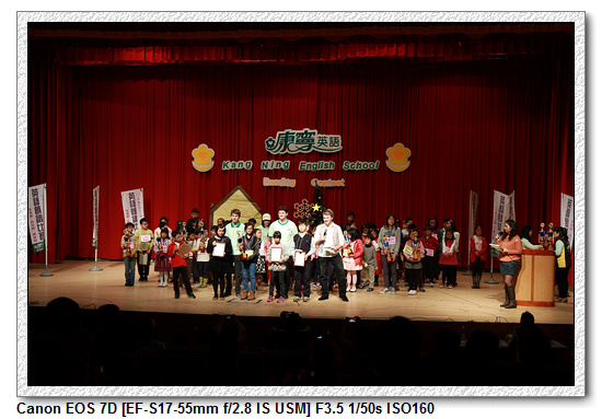 因為每次頒獎前會有一段康寧幼稚園的表演 ,以往都會稍微遲到一會。但這次老師們一直不斷的提醒大家一定要在一點前到,不然到時唱名不到,會取消資格。