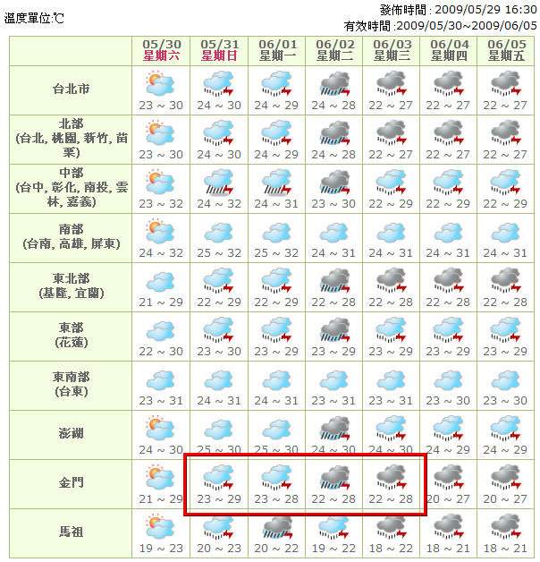 不過出發前幾天,中央氣象局天氣預報對於金門地區似乎不太樂觀。
